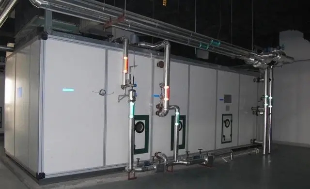 在這種系統(tǒng)中,既有集中的凈化空調(diào)機房,又有分散在各無塵室內(nèi)的空氣處理設(shè)備,是一種集中處理和局部處理相結(jié)合的形式。
